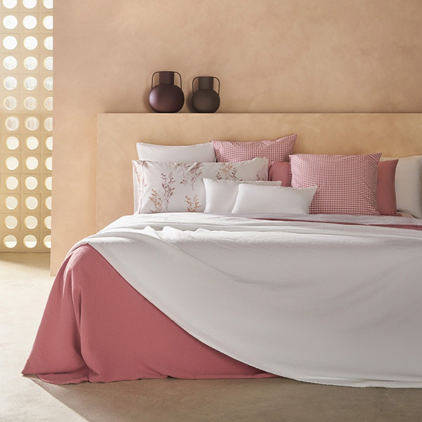 La colcha Fatima es combinable con los nuevos juegos de sábana de la colección primavera-verano 2023 de la marca Bassols.