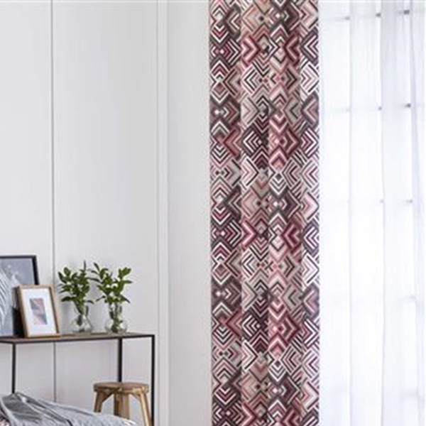 La cortina de Confecciones Paula tiene un estampado moderno y geométrico muy bonito y colorido y un diseño funcional y sencillo de colocar, gracias al diseño de ollados.