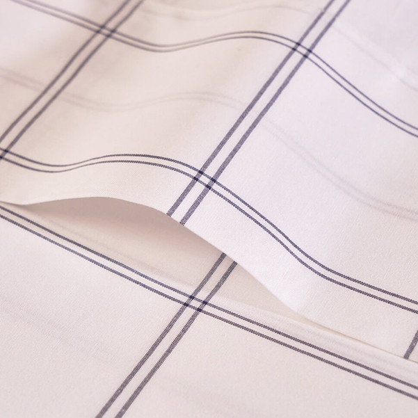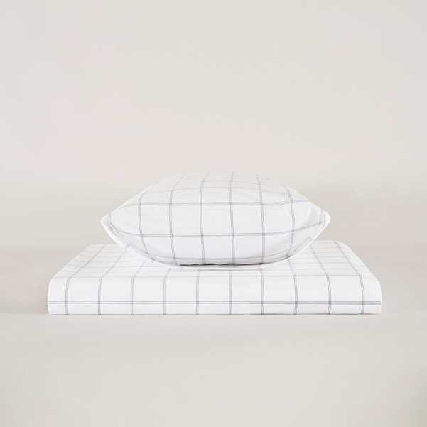 Juego de sábanas Jacqueline Bassols incluye sábana encimera y funda de almohada. Este juego de sábanas está confeccionada con un tejido 100% peinado de fibra larga. Cuenta con un elegante estampado de cuadros en color azul marino y tiene funda de almohada a juego. A partir de la medida de cama de 135 cm se incluyen dos fundas de almohada.