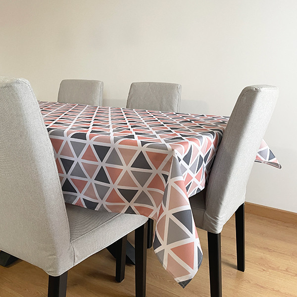 Nuestros manteles antimanchas están confeccionados en tejido repelente de 185 gr y composición 100% poliéster. Diseño con triángulos en colores vibrantes y llamativos.