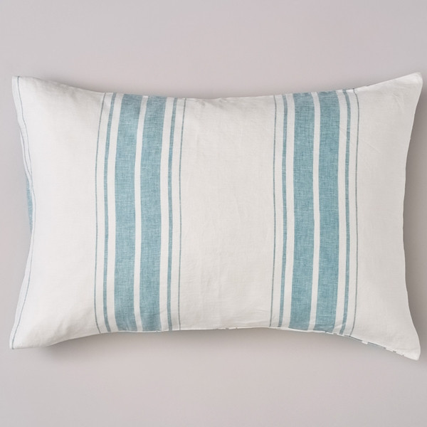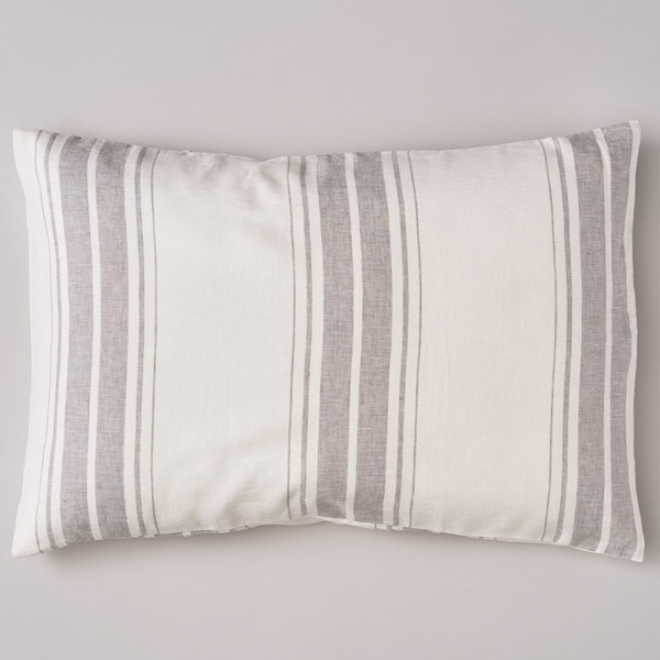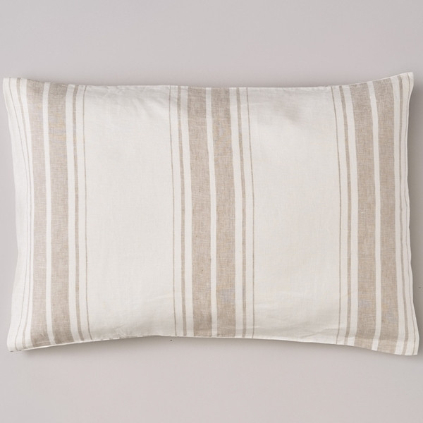 Excelente Funda almohada Bassols confeccionada en tejido de 100% lino percal europeo con diseño a rayas en tonos neutros y acabo de efecto lavado. Perfecta para conseguir una decoración luminosa en el dormitorio y un diseño sencillo y relajante.