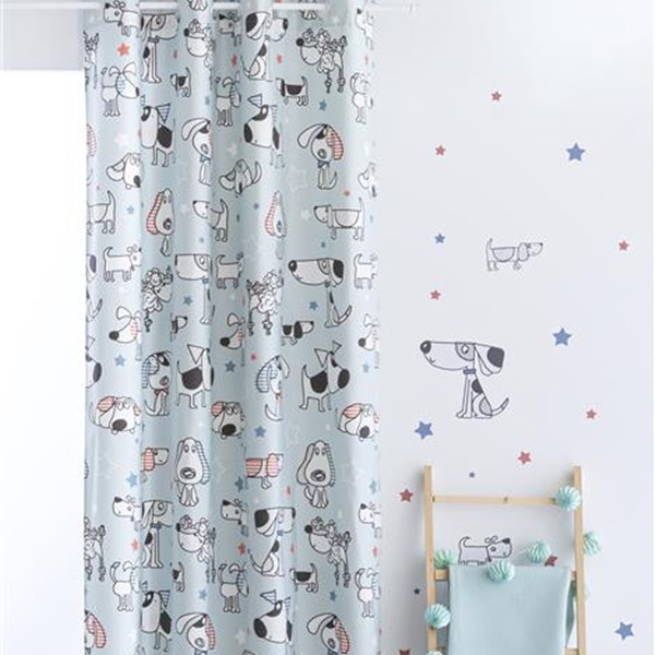 La cortina Max de Confecciones Paula tiene diseño de ollados y un estampado con perritos, está disponible en 2 tamaños y puedes combinarla con la ropa de cama de la misma colección. Además, puedes elegir entre el tamaño 150x260 cm y 200x260 cm.