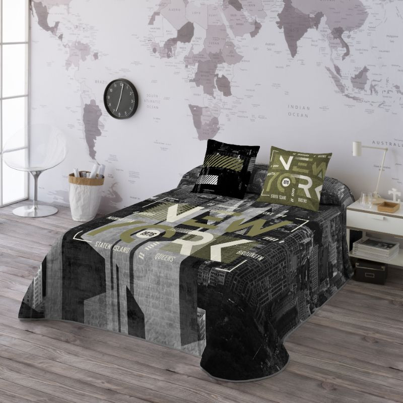 La colcha bouti NY Area Naturals confeccionada con repuntes horizontales para asegurar la mayor suavidad y que las fibras del relleno se mantengan en el sitio. La colcha NY Area tiene un relleno fino de 70g ideal para los meses de entretiempo u hogares muy bien aclimatados en la época de frío. El diseño de la colcha es muy moderno y cosmopolita ya que está inspirado en las calles de la gran ciudad de Nueva York, además el diseño se hace mediante estampación digital.