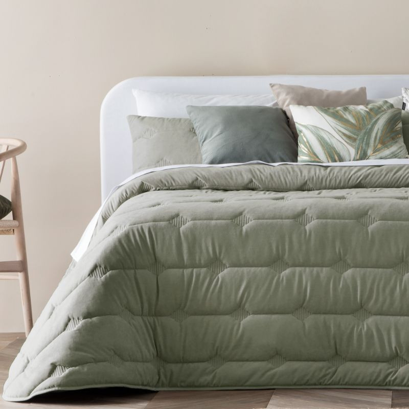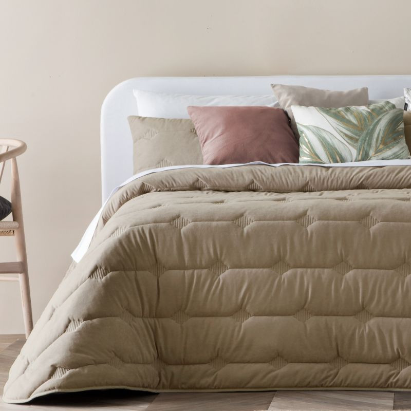 Junto con la colcha bouti Venus NO INCLUYE FUNDAS DE COJIN. La colcha tiene un relleno interior de 150gr.