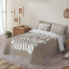 Esta colcha bouti Yare Naturals es una colcha fina que tiene 70g de relleno, pero también sirve para lugares bien aclimatados del frío y está confeccionada con repuntes horizontales que aseguran la sujeción de las fibras y proporcionar mayor suavidad. Esta colcha Naturals está estampada con un diseño de hoja gigante en color blanco. ¡Ideal para darle un decoración diferente a tu dormitorio!