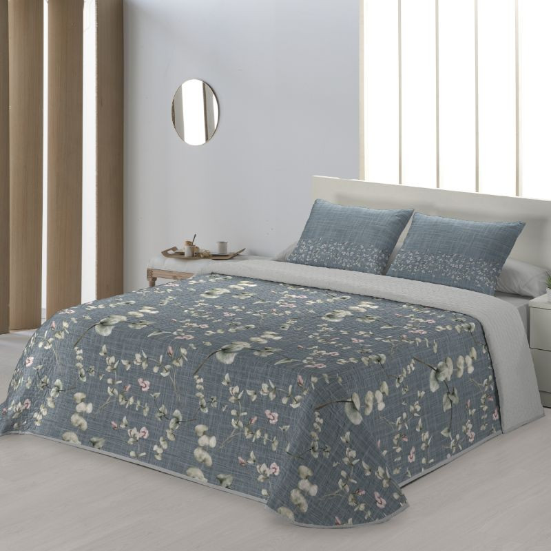 Colcha bouti Azalea de la marca tejidos JVR estampada con diseño de flores azalea que recuerdan a la naturaleza y disponible en color rosa o azul. Confeccionado en España para todas las medidas de cama estándar. La colcha bouti JVR tiene un acolchado ligero de 100gr ideal para los meses de entretiempo o para hogares con una climatización fuerte. ¡Combínalo con una manta o plaid!