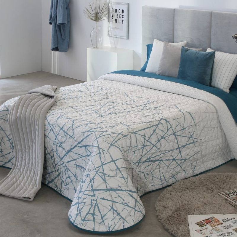 Esta colcha bouti fina Puy Reig Marti es ideal para todos los dormitorios. Esta colcha cuenta con un estampado abstracto de rayas y garabatos en color azul o color gris ideal para combinar con resto de decoración de tu dormitorio. Esta colcha es muy fácil de combinar con otros plaids o cojines.
