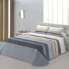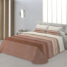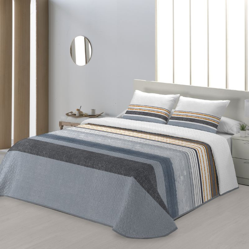 Colcha bouti Jónicode la marca tejidos JVR estampada con diseño juvenil y moderno de rayas en diferentes colores y disponible en color teja y azul. Confeccionado en España para todas las medidas de cama estándar.