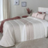 Edredón acolchado Kramer Reig Marti es ideal para todos los dormitorios con cama de matrimonio ya que solamente está confeccionado en estas tallas. Este edredón cuenta con un estampado elegante y moderno en tejido jacquard con franjas de colores neutros y una parte estampada a los pies. Los colores disponibles son rosa y azul, y se incluyen dos cojines a juego con la prenda. Además, puedes combinar con un plaid.