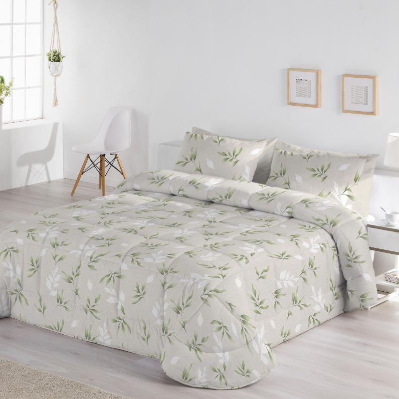 Edredón comforter Desi Fundeco tiene un relleno de 300gr ideal para las noches de frío en invierno. Este edredón tiene un estampado floral en colores verdes que evocan a la naturaleza. Además, es que es un comforter reversible, dando así muchas más opciones decorativas en tu dormitorio y teniendo un dos en uno. ¡Combínalo con un plaid!
