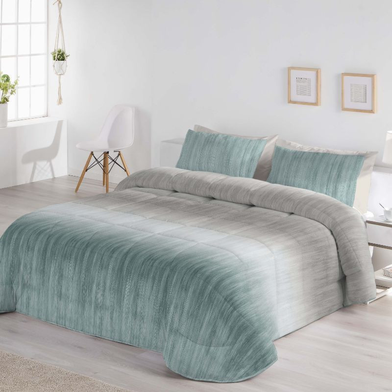 Este edredón Fundeco puedes comprarlo en color agua o camel y tienen un estampado degradado a blanco y gris, pero es un edredón reversible y puedes usarlo también por su parte en color agua o camel. ¡Una prenda muy versátil para cualquier dormitorio y de la que nunca te cansarás!