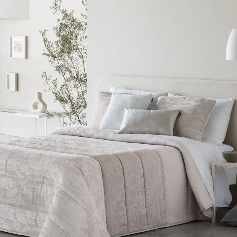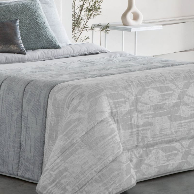 Edredón comforter Misuri Fundeco tiene un relleno de 250gr ideal para las noches de frío en invierno. Este edredón confeccionado en tejido jacquard tiene un diseño estampado en color beige o color gris. ¡Combínalo con un plaid!