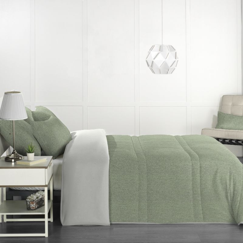 Edredón comforter Sand de la marca tejidos JVR con diseño de tejido jaspeado en color liso, disponible para varios tamaños de cama estándar y en color beige, turquesa u oro. Confeccionado en España para todas las medidas de cama estándar. El edredón nórdico JVR tiene un acolchado de 400gr ideal para los meses de frío. ¡Combínalo con una manta o plaid!