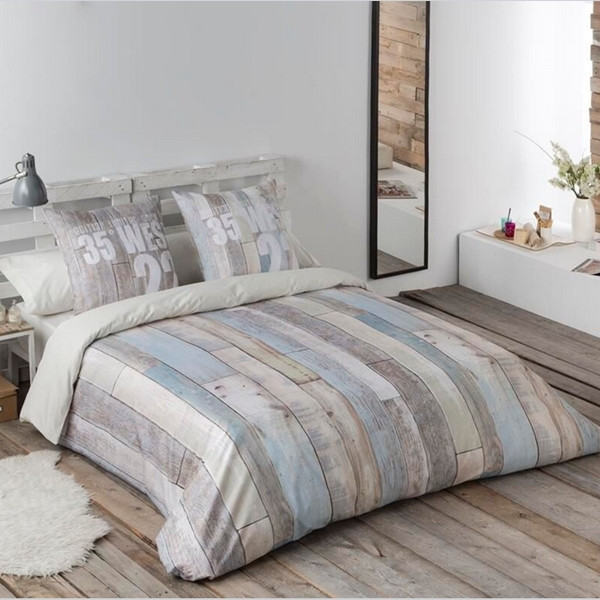 Original y sencilla funda nórdica, con un diseño muy bonito en tonos pastel. Ideal para vestir tu cama y dar un cambio de look a tu dormitorio. Disponible con un estampado que imita listones de madera en diferentes tonos claros y el reverso en tono beige.