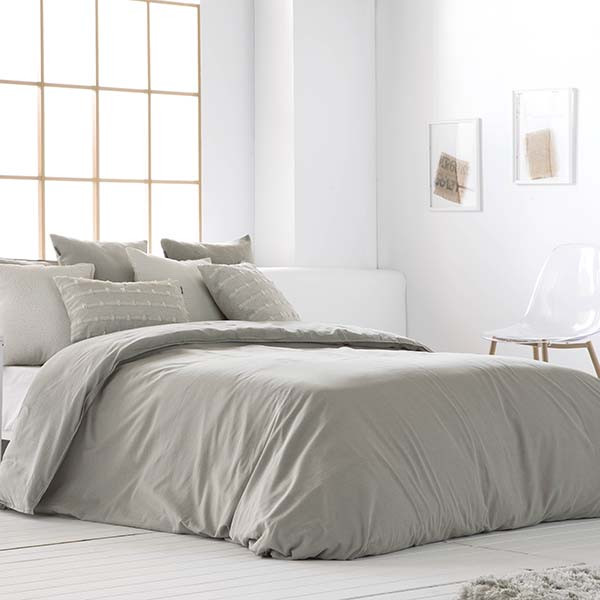 La funda nórdica Bali tiene un diseño muy moderno y con unos colores muy combinables con cualquier dormitorio, ya que son lisas en color lino, menta o gris. Es una funda nórdica 100% algodón e incluye funda de almohada en el set nórdico.