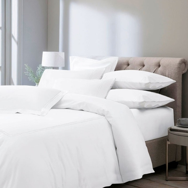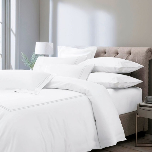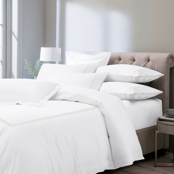 Funda nórdica Bassols de algodón egipcio con un delicado diseño en color blanco combinado con doble bordón en contraste en 3 colores diferentes.
