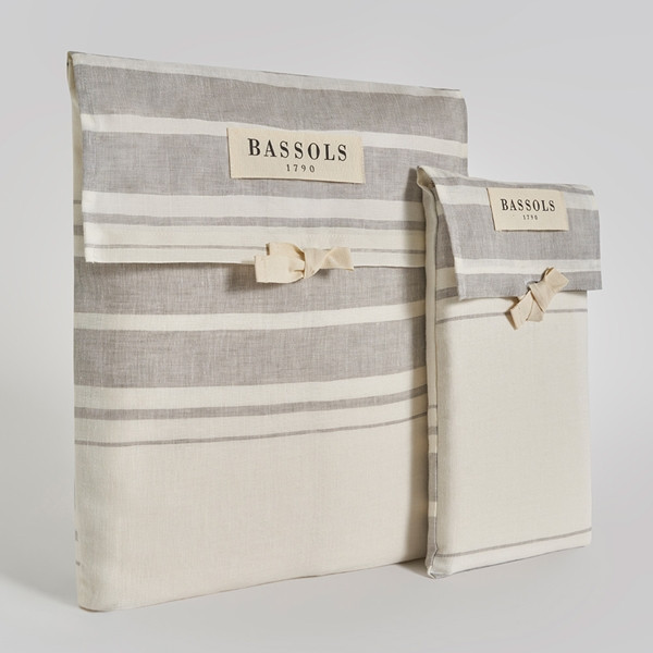 Funda nórdica Bassols de lino modelo Suit. Diseño a rayas en colores pastel con un acabado lavado, perfecta para conseguir una decoración cálida y luminosa. El modelo Suit contiene una funda nórdica Suit con cierre con botones de madeta.