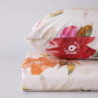 En la funda nórdica Carina Bassols se incluye una funda nórdica y una funda de almohada a juego. Esta funda nórdica está confeccionada con un tejido 100% algodón peinado de fibra larga de percal 200 hilos. Cuenta con un estampado de flores coloridas. Este funda nórdica de algodón está fabricada en España.