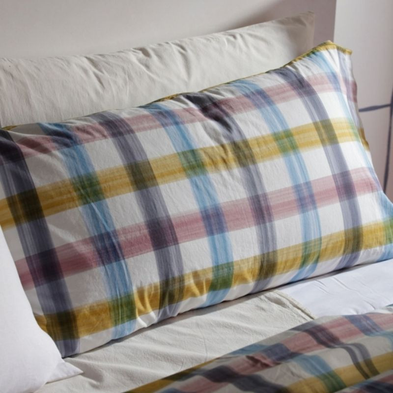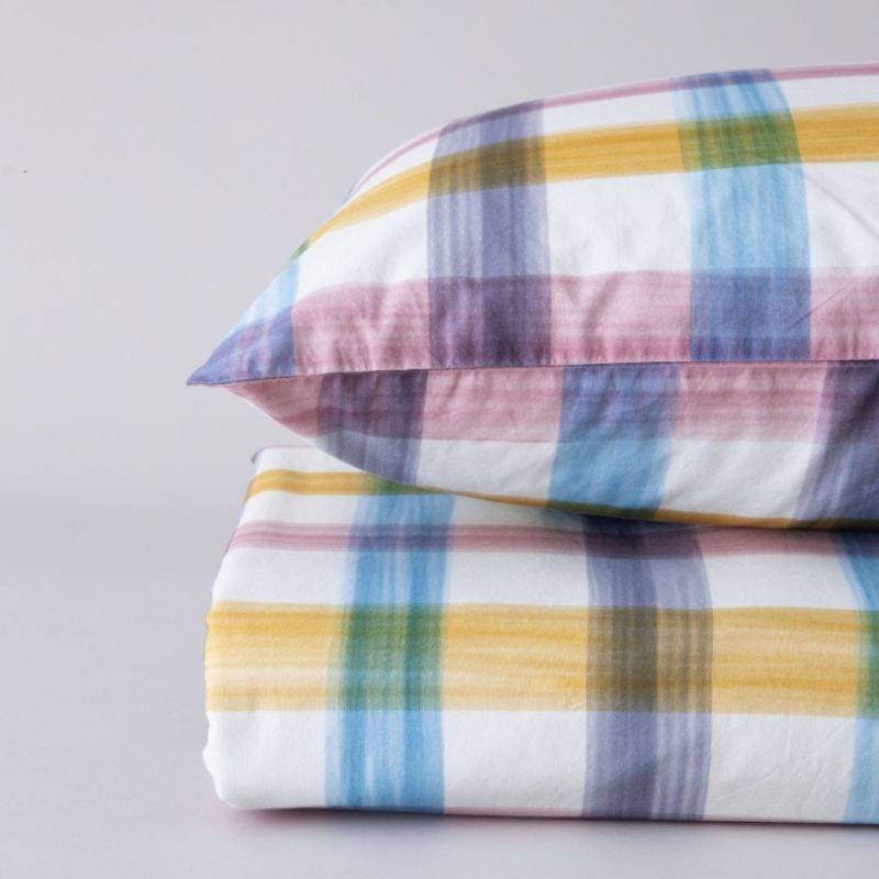 En la funda nórdica Eliza incluye una funda nórdica y una funda de almohada a juego. La funda nórdica está confeccionada con un tejido 100% algodón peinado de fibra larga de percal 200 hilos. En esta funda puedes encontrar un estampado colorido de cuadros acuarelados. Esta funda nórdica de algodón está fabricada en España.