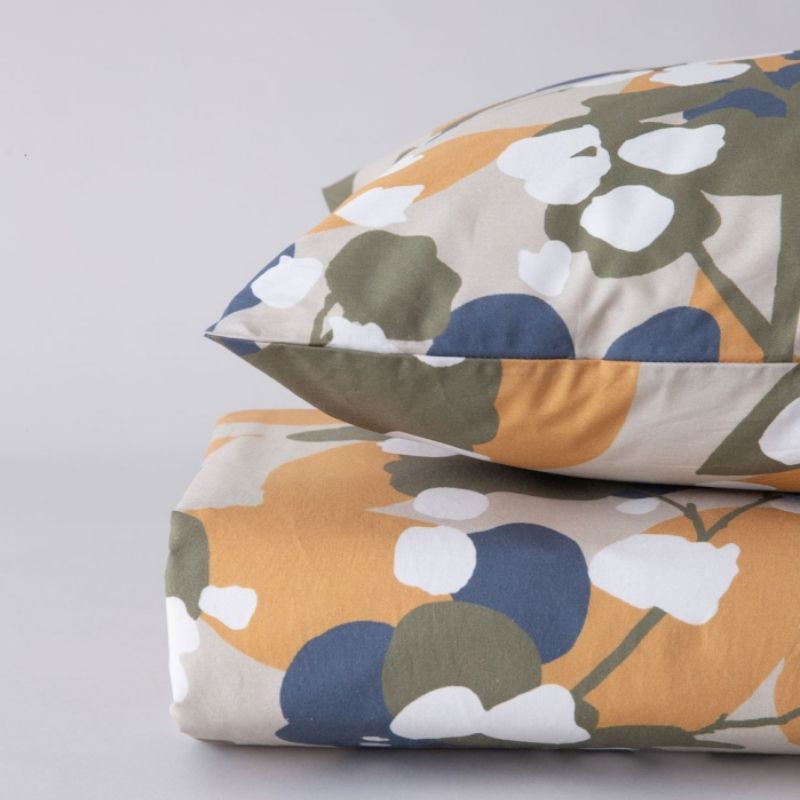En la funda nórdica Irina Bassols se incluye una funda nórdica y una funda de almohada a juego. Esta funda nórdica está confeccionada con un tejido 100% algodón peinado de fibra larga de percal 200 hilos. Cuenta con un estampado floral abstracto en diferentes colores otoñales. Este funda nórdica de algodón está fabricada en España.