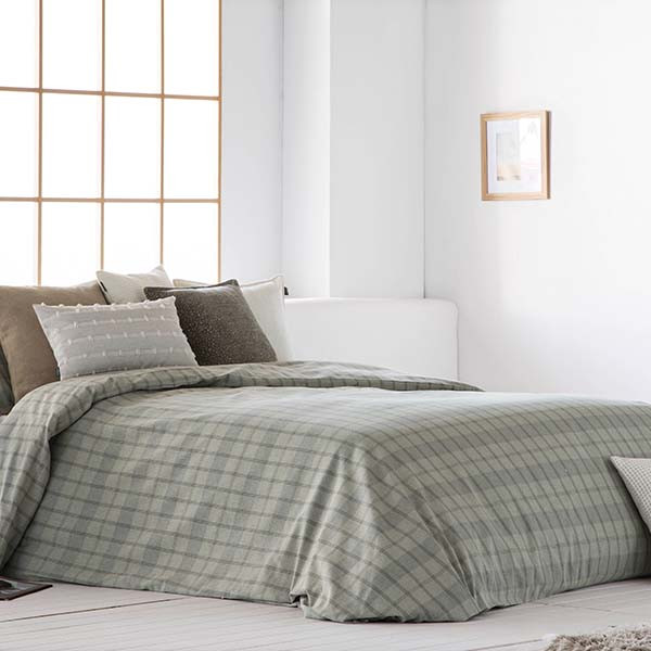 La funda nórdica Greis es ideal para cualquier dormitorio debido a su juvenil y moderno diseño con cuadros verdes. Es una funda nórdica 100% algodón e incluye funda de almohada en el set nórdico.