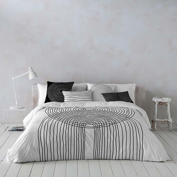 Las fundas nórdicas de Naturals son las mayores tendencias en textil de hogar. En el caso de la funda nórdica Moaré de estampado minimal de líneas y formas.