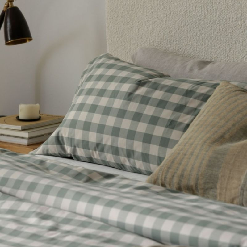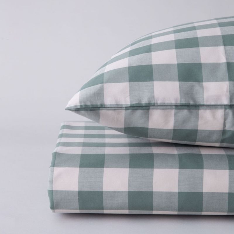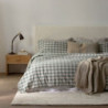 En la funda nórdica Vichy incluye una funda nórdica y una funda de almohada a juego. La funda nórdica está confeccionada con un tejido 100% algodón peinado de fibra larga de percal 200 hilos. Cuenta con un estampado vichy en color verde. Esta funda nórdica de algodón está fabricada en España.