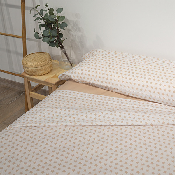 Este juego de sábanas con diseño de estrellas en 4 modelos diferentes. Se confecciona a medida personalizada, adaptándonos a la medida de colchón que necesites.
