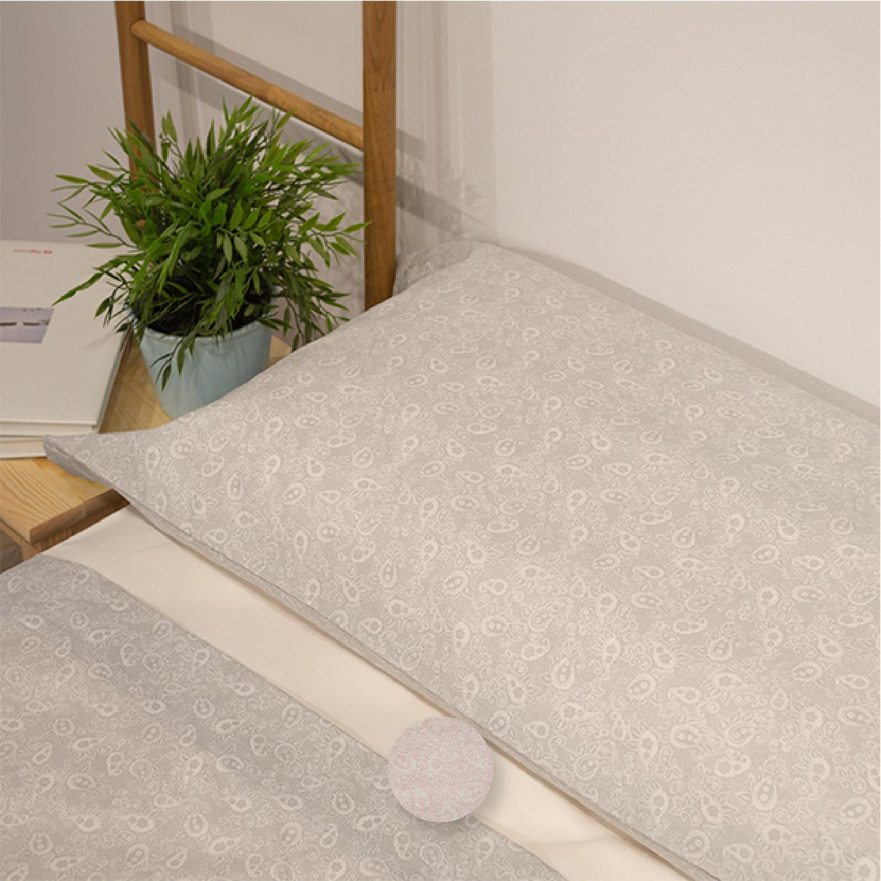 Incluye: bajera color lisa y encimera y funda de almohada estampadas (*funda de almohada partida para camas de 150 cm de ancho en adelante*).