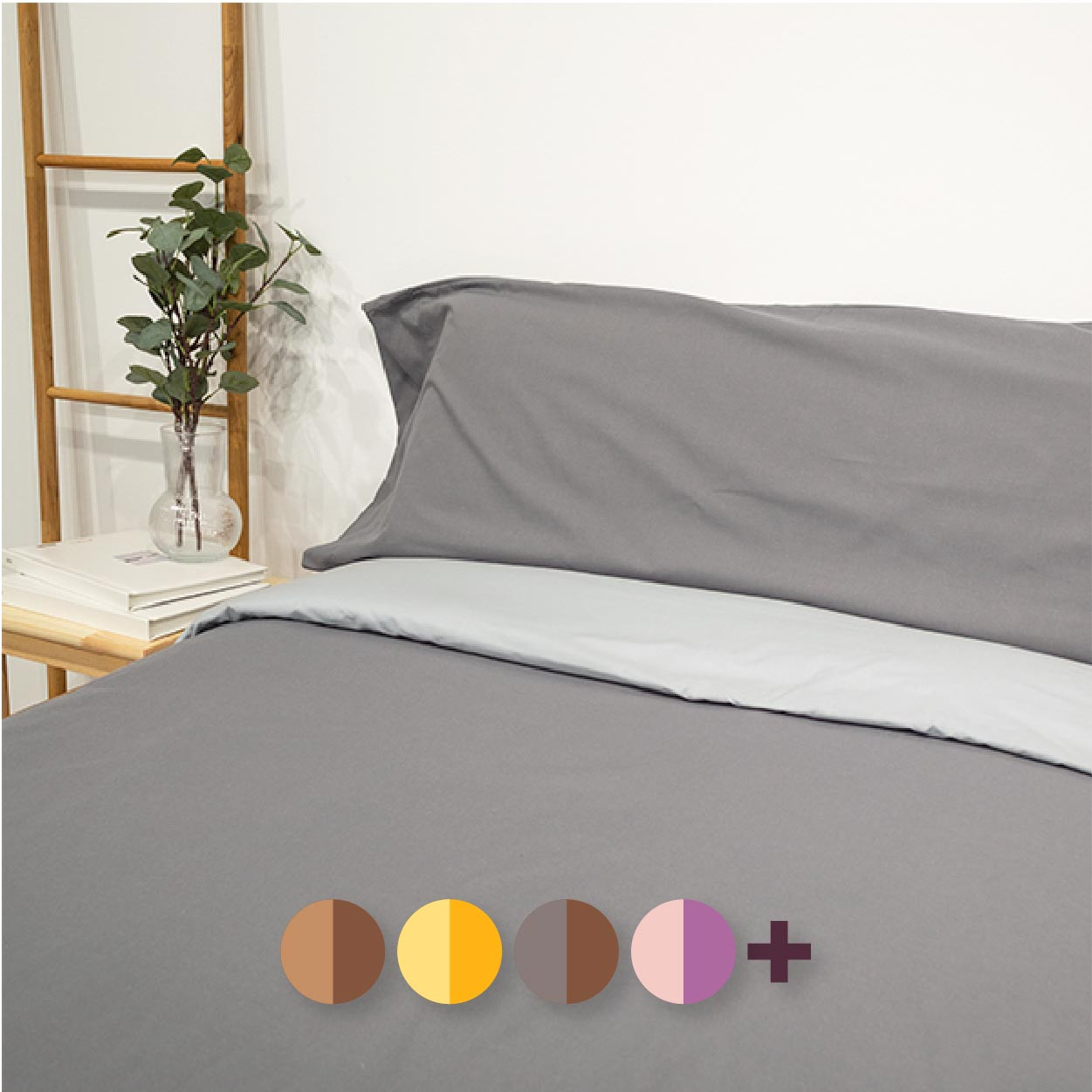 Esta funda nórdica reversible a medida está compuesta por un saco nórdico con diseño bicolor (cierre pespunteado en los extremos para que el relleno no se salga). Tiene un diseño en 10 colores y una composición: 50% algodón y 50% poliéster. (NO incluye funda de almohada)