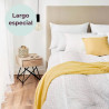 Relleno nórdico Seersucker Mash largo especial. Este relleno de largo especial tiene un gramaje de 300gr y su interior formado por una fibra hueca siliconada reciclada. El tejido del relleno nórdico microfibra es rugoso, favoreciendo así la circulación del aire y evitando los cambios de temperatura. Además, de tener un tacto muy suave, el relleno nórdico puede concebirse también como edredón ya que cuenta con un acabado en pequeñas y sutiles arrugas que hacen de este relleno una prenda decorativa.